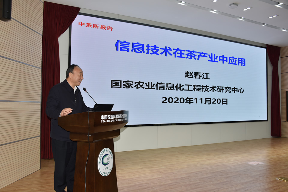 11月20日,中國工程院院士、國家農(nóng)業(yè)信息化工程技術(shù)研究中心主任趙春江研究員應(yīng)邀到所作題為《信息技術(shù)在茶產(chǎn)業(yè)中應(yīng)用》的報告。阮建云副所長主持報告會。