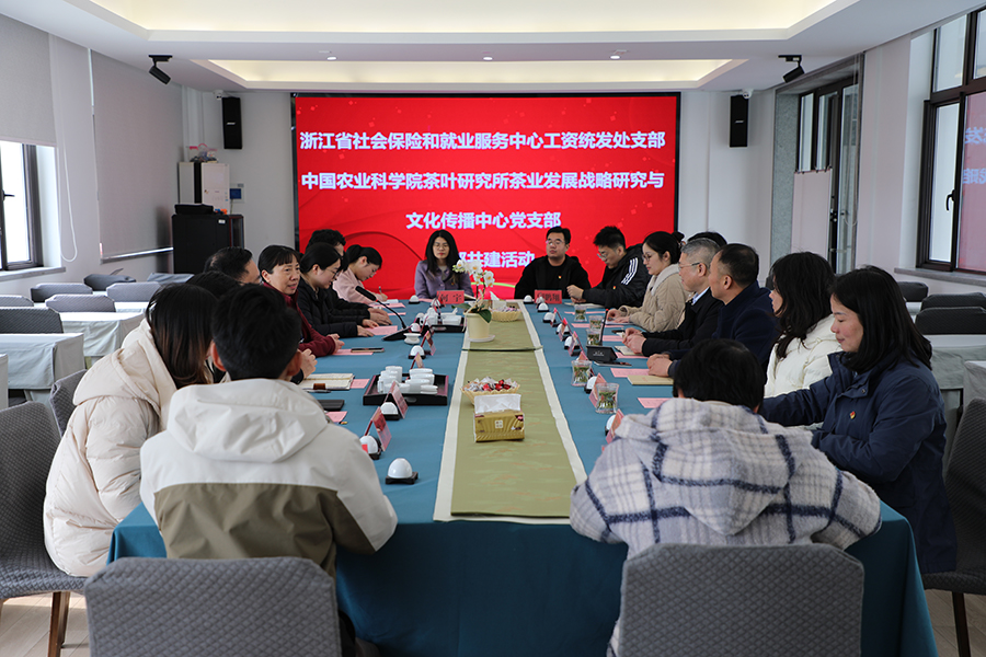 11月30日,茶業(yè)發(fā)展戰(zhàn)略研究與文化傳播中心黨支部與浙江省社會(huì)保險(xiǎn)和就業(yè)服務(wù)中心工資統(tǒng)發(fā)處支部開展支部共建活動(dòng)。活動(dòng)中,兩個(gè)支部黨員們重溫了習(xí)近平總書記關(guān)于茶文化、茶產(chǎn)業(yè)、茶科技的系列重要指示精神,實(shí)地考察了國(guó)家茶樹種質(zhì)資源圃(杭州)和龍冠公司,了解了茶樹種質(zhì)資源收集保存與共享利用的情況和龍井茶的傳統(tǒng)制作工藝。雙方還就如何將黨建和業(yè)務(wù)、理論與實(shí)踐更好地融合在一起展開了深入交流。通過此次活動(dòng),兩個(gè)支部建立了互幫、互學(xué)、互助的長(zhǎng)效機(jī)制。