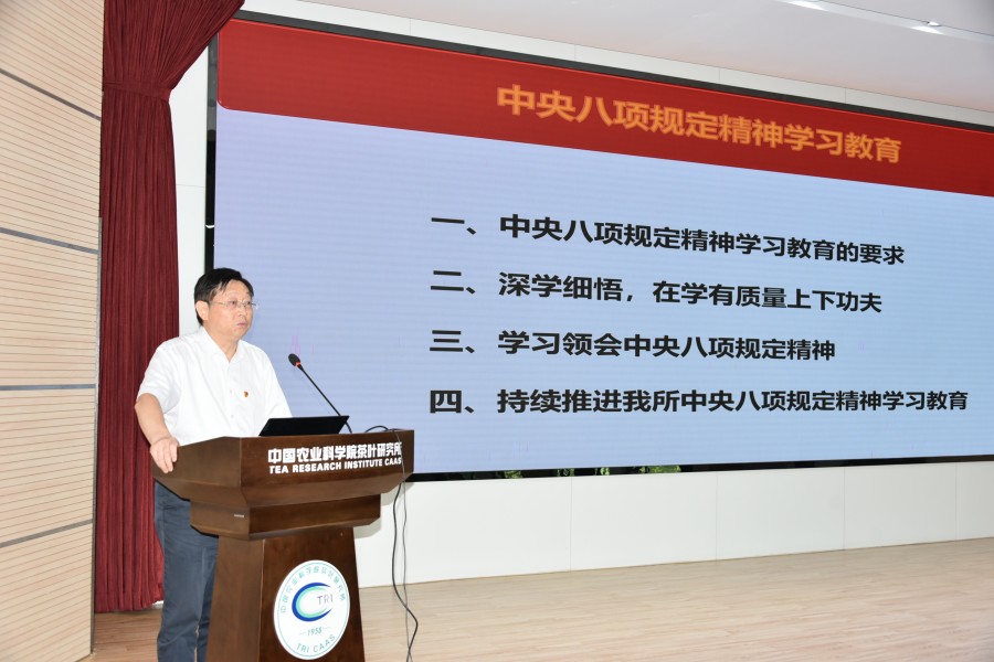 紀委書記王新超同志結合我所工作實際,深入解讀了中央八項規定及其實施細則精神。黨委書記江用文圍繞《推進中央八項規定精神學習教育走深走實》講授專題黨課。